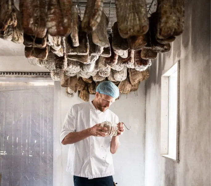 Using pasture-reared Tamworth pork from Fred Price's Gothelney Farm, Westcombe produce an exceedingly unique and sustainable range of charcuterie. A true masterclass in regenerative, circular farming.